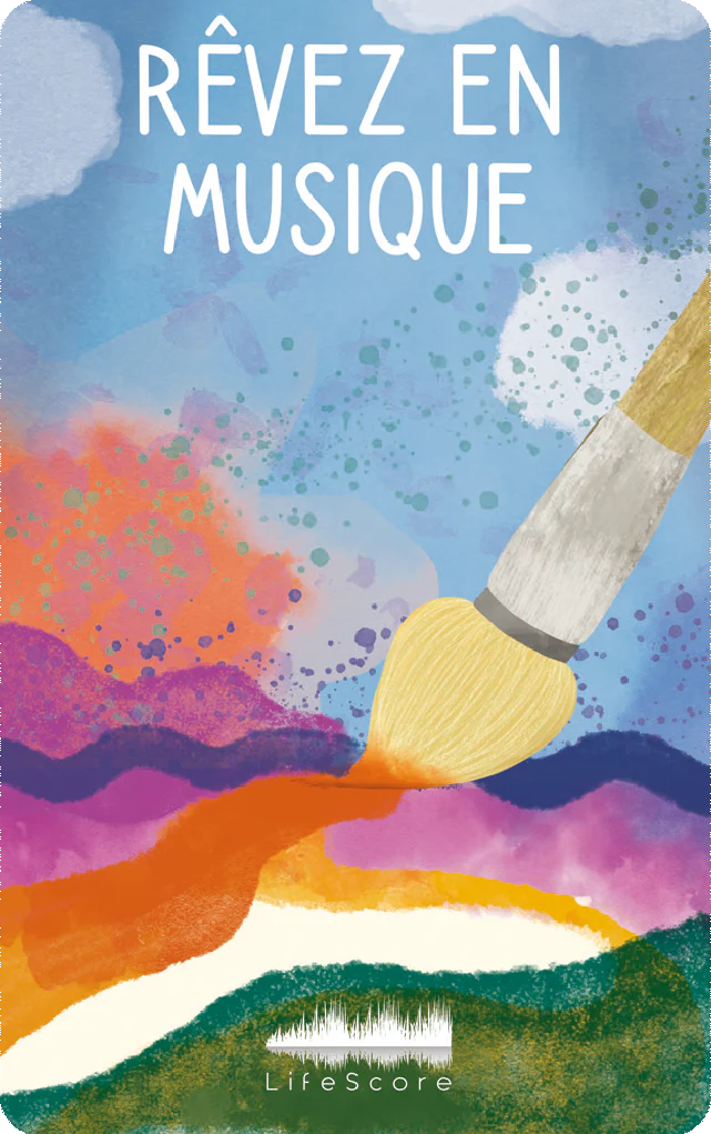 Les cartes LifeScore sont des ambiances sonores immersives qui favorisent un état d'esprit calme. Chaque carte est un morceau de musique d'une heure, jouant en boucle, qui a été composé par des compositeurs mondialement reconnus et joué par des musiciens notoires. La musique a ensuite été recomposée et améliorée par l'algorithme Cellular Composition™ de LifeScore et mélangée à des enregistrements relaxants et de haute qualité. Le tout donne une expérience musicale apaisante qui aide les jeunes auditeurs à donner libre cours à leur imagination.