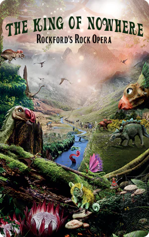 The King of Nowhere, the second adventure from Rockford's Rock Opera, is a tale about extinction and redemption. It's a hopeful story that shows that even the smallest creatures can make the biggest difference and that although we may sometimes may feel lost, there is always hope. The 75-minute audio story includes six new songs and a great new adventure.